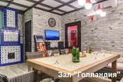 1. new Голландия (до 10 человек, финская сауна, джакузи на 6 человек с гидромассажем, бильярд, караоке LG, караоке профессиональное (платно), душевая, обливное ведро) будни: 9:00-13:00 - 1200 руб/час 13:00-17:00 - 1600 руб/час 17:00-9:00 - 2200 руб/час праздники и выходные: 9:00-13:00 - 1600 руб/час 13:00-17:00 - 2200 руб/час 17:00-9:00 - 2500 руб/час 2. Япония (до 8 человек, финская сауна, джакузи на 6 человек с гидромассажем, аэрохоккей, душевая, обливное ведро) будни: 9:00-13:00 - 900 руб/час 13:00-17:00 - 1100 руб/час 17:00-9:00 - 1700 руб/час праздники и выходные: 9:00-13:00 - 1300 руб/час 13:00-17:00 - 1700 руб/час 17:00-9:00 - 2000 руб/час 3. Турция (до 10 человек. ВЛАЖНАЯ ЗОНА: хаммам, джакузи на 6 персон, гидромассаж, обливное ведро, душевая. СУХАЯ ЗОНА: гостиная меблированная, раздевалка (фен, сейф), связь с баром, комната отдыха, туалет, массажное кресло (платно), TV DVD , караоке LG, караоке профессиональное (платно), аэрохоккей (залог за биты и шайбу 2000 рублей), детский стульчик по требованию) будни: 9:00-13:00 - 1000 руб/час 13:00-17:00 - 1300 руб/час 17:00-9:00 - 1900 руб/час праздники и выходные: 9:00-13:00 - 1400 руб/час 13:00-17:00 - 1900 руб/час 17:00-9:00 - 2200 руб/час 4. Китай (до 25 человек, банкетный зал, бильярд, раздевалка с феном и сейфом, связь с баром, 2комнаты отдыха, туалет, массажное кресло (платно), TV, DVD, караоке LG, караоке профессиональное (платно), детский стульчик по требованию, финская сауна, хаммам, бассейн 2,5х5,5 с гидромассажем и водопадом, дорожка Кнейпа, обливное ведро, душевые) будни: 9:00-13:00 - 2000 руб/час 13:00-17:00 - 2400 руб/час 17:00-9:00 - 3000 руб/час праздники и выходные: 9:00-13:00 - 2400 руб/час 13:00-17:00 - 3000 руб/час 17:00-9:00 - 4000 руб/час 5. Австралия (до 10 человек, соляная парная (Гималайская соль), бассейн 2,5х4, гидромассаж, водопад, дорожка Кнейпа, душевые, мебелированная гостиная, раздевалка (фен, сейф), связь с баром, комната отдыха, туалет, массажное кресло, TV, DVD, караоке) будни: 9:00-13:00 - 1000 руб/час 13:00-17:00 - 1300 руб/час 17:00-9:00 - 1900 руб/час праздники и выходные: 9:00-13:00 - 1400 руб/час 13:00-17:00 - 1900 руб/час 17:00-9:00 - 2200 руб/час 6. Греция (до 8 человек, финская сауна, бассейн 2,5х3,5, дорожка Кнейпа, гидромассаж, обливное ведро, комната отдыха) будни: 9:00-13:00 - 900 руб/час 13:00-17:00 - 1100 руб/час 17:00-9:00 - 1700 руб/час праздники и выходные: 9:00-13:00 - 1300 руб/час 13:00-17:00 - 1700 руб/час 17:00-9:00 - 2000 руб/час 7. Франция (до 6 человек, финская сауна, бассейн 2,5х3,5, дорожка Кнейпа, комната отдыха) будни: 9:00-13:00 - 900 руб/час 13:00-17:00 - 1100 руб/час 17:00-9:00 - 1700 руб/час праздники и выходные: 9:00-13:00 - 1300 руб/час 13:00-17:00 - 1700 руб/час 17:00-9:00 - 2000 руб/час 8. Италия (до 8 человек, финская сауна, бассейн 2,5х3,5, дорожка Кнейпа, комната отдыха) будни: 9:00-13:00 - 900 руб/час 13:00-17:00 - 1100 руб/час 17:00-9:00 - 1700 руб/час праздники и выходные: 9:00-13:00 - 1300 руб/час 13:00-17:00 - 1700 руб/час 17:00-9:00 - 2000 руб/час 9. Египет (до 8 человек, хаммам, бассейн 3х3,5, комната отдыха) будни: 9:00-13:00 - 900 руб/час 13:00-17:00 - 1100 руб/час 17:00-9:00 - 1700 руб/час праздники и выходные: 9:00-13:00 - 1300 руб/час 13:00-17:00 - 1700 руб/час 17:00-9:00 - 2000 руб/час 10. Индия (до 10 человек, финская сауна, аквагорка, бассейн 4х4, дорожка Кнейпа, комната отдыха) будни: 9:00-13:00 - 1000 руб/час 13:00-17:00 - 1300 руб/час 17:00-9:00 - 1900 руб/час праздники и выходные: 9:00-13:00 - 1400 руб/час 13:00-17:00 - 1900 руб/час 17:00-9:00 - 2200 руб/час Тарификация после двух часов ПОМИНУТНАЯ. Минимальное время аренды любого зала = 2 часам. Для игры в бильярд требуется залог за кии и шары 5000 рублей. Доплата за дополнительного гостя (кроме детей до 12 лет) за все время аренды зала 300 рублей. В каждом зале имеется: бассейн с гидромассажем и водопадом, душевая, мебелированная гостиная, р