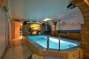 В этой сауне бассейн 6х3 с очисткой и фильтрацией воды, гидромассаж