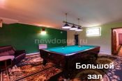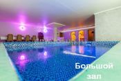 Большой зал с бассейном до 20 человек. Здесь, на мягких кожаных креслах и диванах за большим столом можно перекусить или поесть, пообщаться с друзьями, а может и провести переговоры или поболтать о жизни. Мягкое освещение, натуральные материалы, кожаная мебель и видеосистема создают приятную атмосферу неформальной дружеской встречи. Зал с бильярдным и общим залом, массажной и релаксационной комнатами – отличное решение для встреч, отдыха и развлечений компаний из 6-20 человек. В просторном, площадью 300м2, помещении созданы все условия для отличного отдыха друзей, коллег, партнёров по бизнесу.