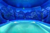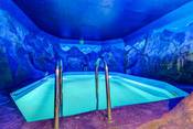 В этой сауне бассейн 6х6 с глубиной 1.8м, подсветка, подогрев, гидромассаж, джакузи
