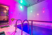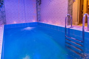 В этой сауне бассейн 4x4 с подсветкой, водопадом и фильтрацией