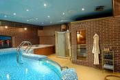 В этой сауне бассейн 6x5 подсветка, стекло, противоток, джакузи