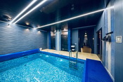 В этой сауне бассейн 8x10 метров с водопадом и противотоком, глубиной 2.20 м. !