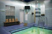 В этой сауне бассейн 2,5х2,5, температура воды регулируется