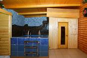 В этой сауне бассейн 3х3 с подогревом и постоянной фильтрацией