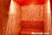 Отдыхали здесь с подругами в малом зале, нас всего было 3 человека. Отличная сауна с такой душевной парилкой как нам русским женщинам и нравится. Кстати мы выбрали именно русскую баню, кушали только русскую кузню, у нас был эдакий день патриотизма что ли. Нам все по сути понравилось, вокруг чисто, нет ничего лишнего, обстановка расслабляет, даёт возможность понять что отдых уже настал. Парилка горячая а вода в бассейне холодная, все как положено, но самое главное что в нем чистая вода. Меню не могу сказать что большое, но и мы не в ресторан пришли, в общем покушать что есть, и по вкусу очень даже неплохо. Сауна обошлась нам не особо дорого, и дала возможность расслабиться. Фотографии