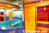 3. Малый зал с джакузи и финской парной (до 6 человек. Уютная гостиная с мягкой мебелью, аудио, видео аппаратурой, караоке)