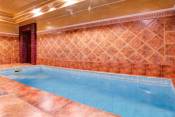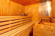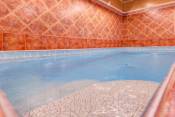 В этой сауне бассейн 4x3 с противотоком, подогревом и гидромассажем, глубиной 1,6м