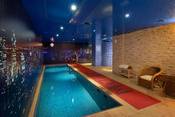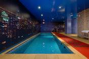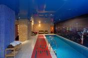 В этой сауне бассейн 9x4 с противотоком и подсветкой