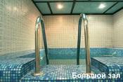 В этой сауне бассейн 3х2.5 и 2.5х1.5 с гейзером и водопадом
