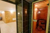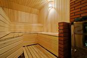 Сауна с большой радостью готова встретить любителей доброго пара и распахнуть дверь русско-финской парной. В ней может одновременно пропариться до 8 человек и Вам в такой большой компании не будет тесно. Наша парная позволит Вам побаловать себя и Ваших друзей банным веником, используя предложенные ароматические масла. После приятного жара парилки всегда можно окунуться в глубокий бассейн с водой, за чистотой которой мы следим с учётом современных технологий. Бассейн оснащён регулируемым искусственным противотоком, что позволяет, как полноценно плавать, так и использовать его в виде гидромассажа.