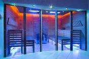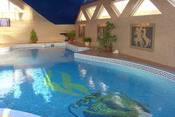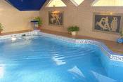В этой сауне бассейн 8х6 подсветка, противоток, джакузи