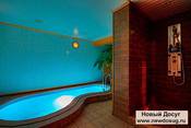 В этой сауне бассейн 4x2 и джакузи с гидромассажем