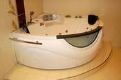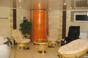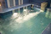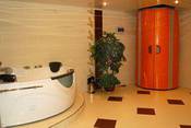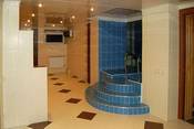 В этой сауне бассейн 3х3 с подогревом и противотоком. Джакузи с гидромассажем