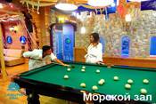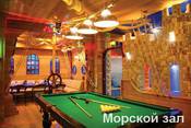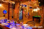 1. Морской зал (вместимость до 20 человек, русско-финская парилка, 2 комнаты отдыха, бассейн 4х3 с подогревом, фильтрацией, подсветкой и водопадом + холодная купель 1x1,5):
