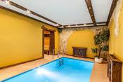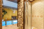 Сауна чистая, вода в бассейне тоже. В сауне жарко, как раз как я люблю. Жене было даже слишком, а я реально отвел душу.