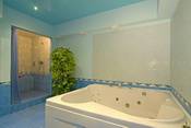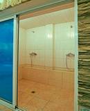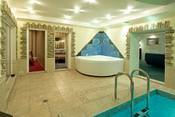 В этой сауне бассейн 3х4 с очисткой и фильтрацией воды, кaскад