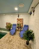В этой сауне бассейн большой 4х5 с подогревом, фильтрацией и противотоком
