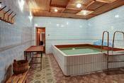 В этой сауне бассейн 4x4 с подогревом и фильтрацией, джакузи