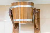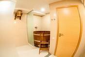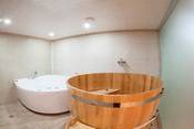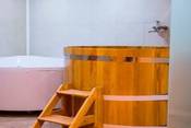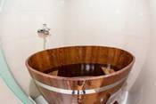 В этой сауне бассейн купель из лиственницы (температура по желанию), джакузи
