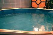 В этой сауне бассейн 3х3, подсветка, гейзер, джакузи