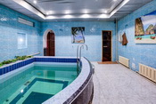 В этой сауне бассейн 3х4 с подогревом и водопадом