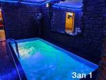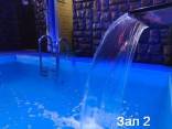В этой сауне бассейн 4x5 с гейзером и водопадом