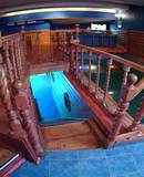 В этой сауне бассейн 5х7 с подогревом , подсветкой, проточной водой