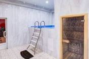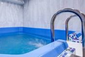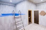 В этой сауне бассейн 3x2, подогрев, подсветка, гидромассаж, фильтрация, купель, противоток