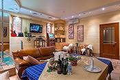 Отмечали здесь юбилей мужа. Заказ делали на вечер пятницы за неделю. Кампания собралась 10 человек. Места достаточно. Интерьер просто покорил. Есть ощущение, что мы дома. Понравился джакузи с кучей режимов. Из развлечений пользовались только караоке. Аппаратура порадовала. Пели, танцевали. Было очень весело! От кухни хотелось бы большего разнообразия. Но, в целом, неплохо. Парная произвела хорошее впечатление: чистая, жаркая, вместительная. Все необходимое приобрели на месте. Серьезных косяков мы не обнаружили. Остались довольны отдыхом и готовы тут снова отметить какое-нибудь событие или просто провести время. Рекомендую. Фотографии