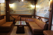 Интерьер выполнен в "Морском стиле", из натурального дерева, способствует экологически чистой атмосфере в помещении, что необходимо в наше высокоскоростное время синтетики и суррогатов.