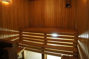 В этой сауне бассейн 3x4 с регулярным обновлением воды и подсветкой: холодный (глубина 160см) и теплый (джакузи с гидромассажем и водопадом)