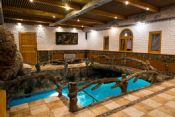 В этой сауне бассейн 16х3 с водопадом и волной