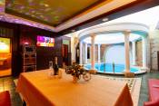 Нажмите на номер для звонка: 8(977)424-85-82 Для получения ВОЗМОЖНЫХ скидок и бонусов скажите администратору при звонке в сауну промокод "НОВЫЙ ДОСУГ". Отличная сауна с 3 залами, оформленными в разнообразных стилях. Вас ждут интересные тематические интерьеры, а так же большие и тёплые бассейны 5х4 метра и глубиной почти 2 метра. В каждом зале своя русско-финская парная. Для вашего досуга имеется бильярд и аэрохоккей. На территории комплекса имеется большая бесплатная парковка. Помимо сауны работает мини-отель с почасовыми комнатами.