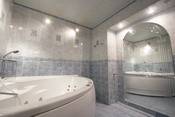 В этой сауне бассейн 3х6, подсветка, водопад, джакузи