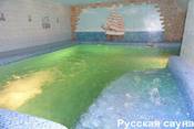 В этой сауне бассейн 2 бассейна с противотоком и гейзером