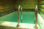 В этой сауне бассейн 3,5х4, 2х2, подсветка, гейзер, подогрев, фильтрация, купель