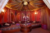 Стиль интерьера абсолютно соответствует названию. Отмечали здесь в большом зале девичник (12 человек). Освещение крутое, создает ощущение праздника. Чистота кристальная. Хамам очень напоминает турецкий. Есть все принадлежности для банного отдыха. Бассейн очень понравился. Вода теплая, приятная подсветка. Аппаратура с хорошим звуком. Еще один плюсик ставим за кальян. Ароматный коктейль табаков с мягким вкусом. Персонал вежливый и деликатный. Если ехать сюда на автомобилях, то имеется удобная охраняемая стоянка. Остались очень довольны отдыхом. Ни одного минуса не нашли. Фотографии