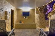 В этой сауне бассейн 5х6 с подсветкой, гейзером, джакузи, противотоком, подогревом и фильтрацией
