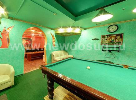 Для вас подготовлены: уютный зал с кожаной мебелью для компании до 12 человек, вся современная аудио-видео аппаратура, спутниковое TV, караоке, русский бильярд, бассейн 3х4 метра с подсветкой, 2 комнаты отдыха.
