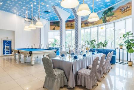 1. Арабский зал - вместимость до 10 человек, 2 комнаты отдыха, русский бильярд 12 футов, турецкий хаммам.