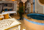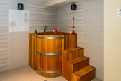 В этой сауне бассейн круглый СПА-бассейн с гидромассажем и подогревом в хаммаме
